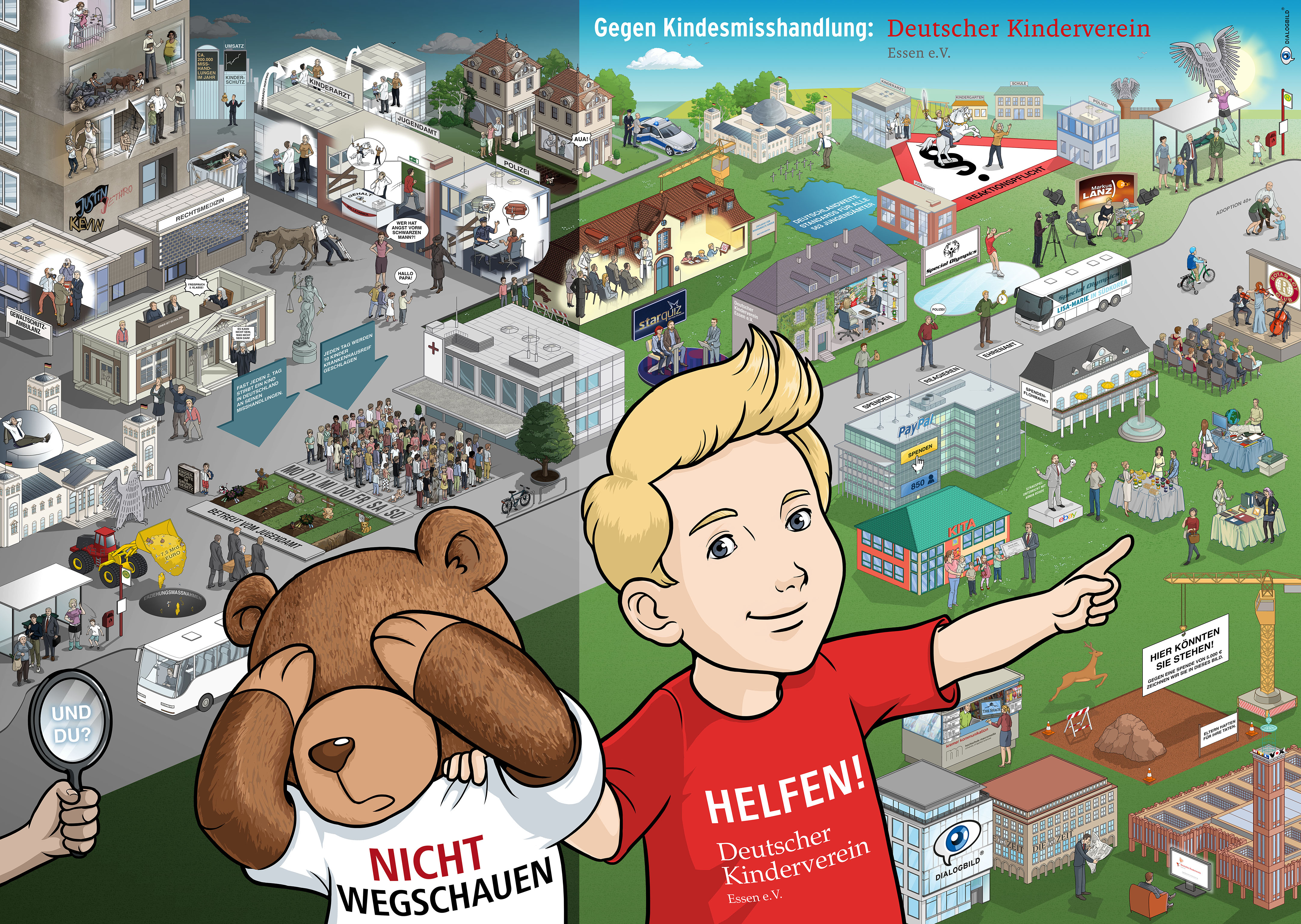 Dieses riesige Bild wurde pro bono konzipiert und illustriert von der Firma DIALOGBILD. Dialogbild-Medien visualisieren komplexe Themen auf anschauliche und nachvollziehbare Weise. Sie sind ein effektives Instrument, um Wissen zu vermitteln und Motivation zu fördern. Die zum Teil interaktiven Lernformate sorgen für einen unterhaltsamen und nachhaltigen Wissenstransfer.